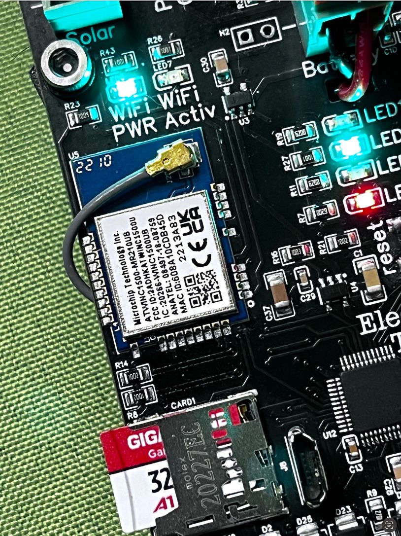 There is code to turn on the WiFi power LED, the green LED above the WiFi module labeled "WiFi PWR." That code looks like this: